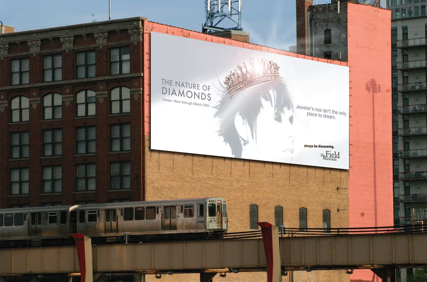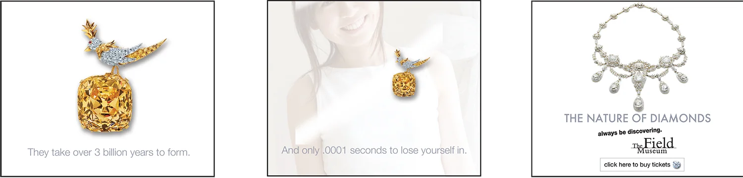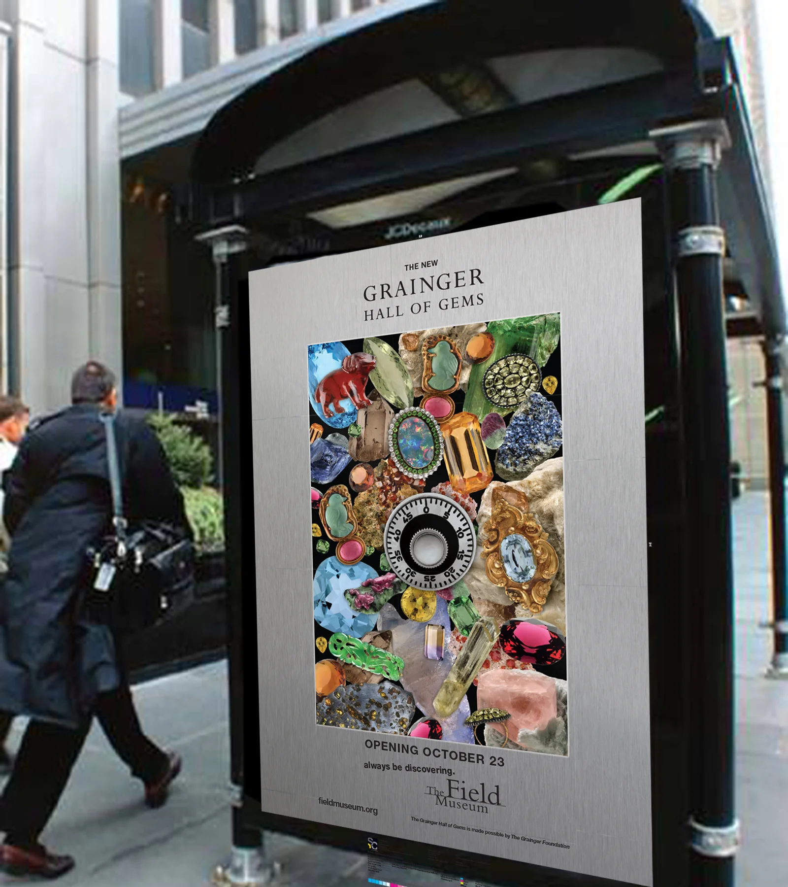 The Field Museum of Chicago was highlighting two gems shows simultaneously. One was a jewelry exhibit and the other featured the actual minerals and stones that are mined for gems. So the advertising had to incorporate both.